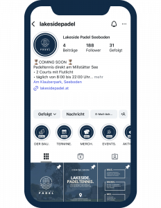 Folge uns auf Instagram – dich erwarten Eindrücke von der Anlage, aktuelle Angebote und alles rund um Lakeside Padel.