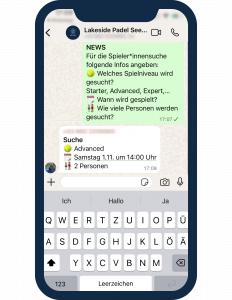 In unserer WhatsApp-Gruppe findest du Mitspieler*innen, verabredest Matches und bleibst immer up to date.